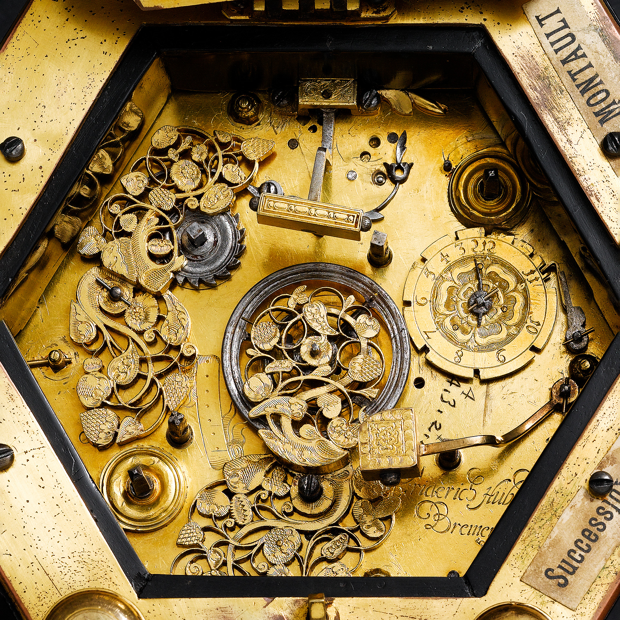 Auf der Rückplatine in Kursiv graviert, signiert: Friderich Hübner, Bremen