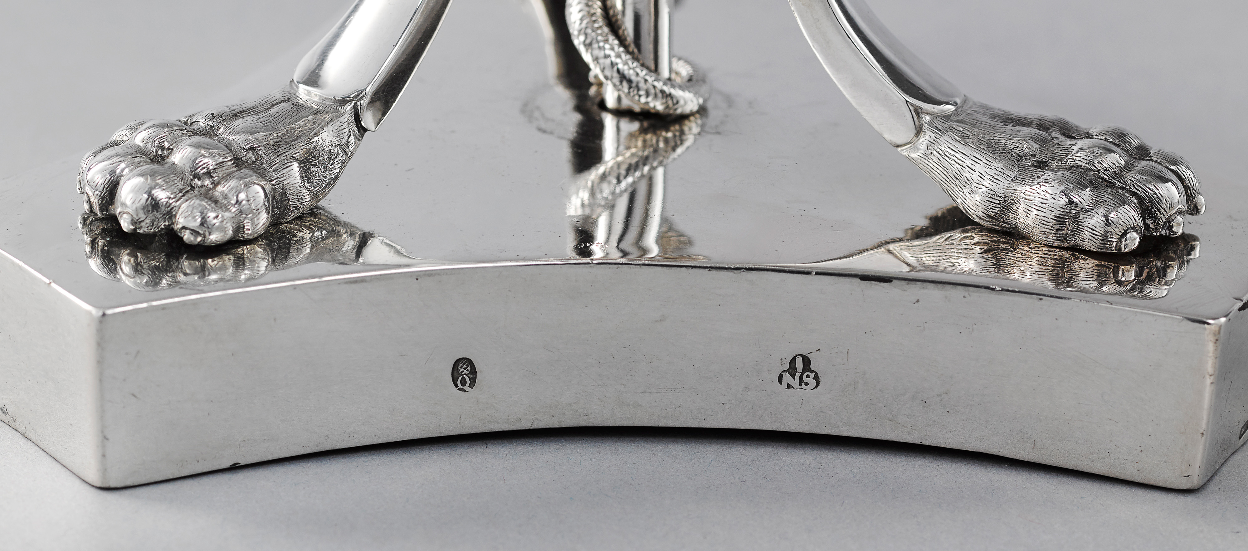 Beschauzeichen im Oval: Pyr für Augsburg und Jahresbuchstabe Q für das Jahr 1805-1806 Meisterzeichen: Monogramm ‚INS’ für Johann Alois (alias Johann Nepomuk) Seethaler