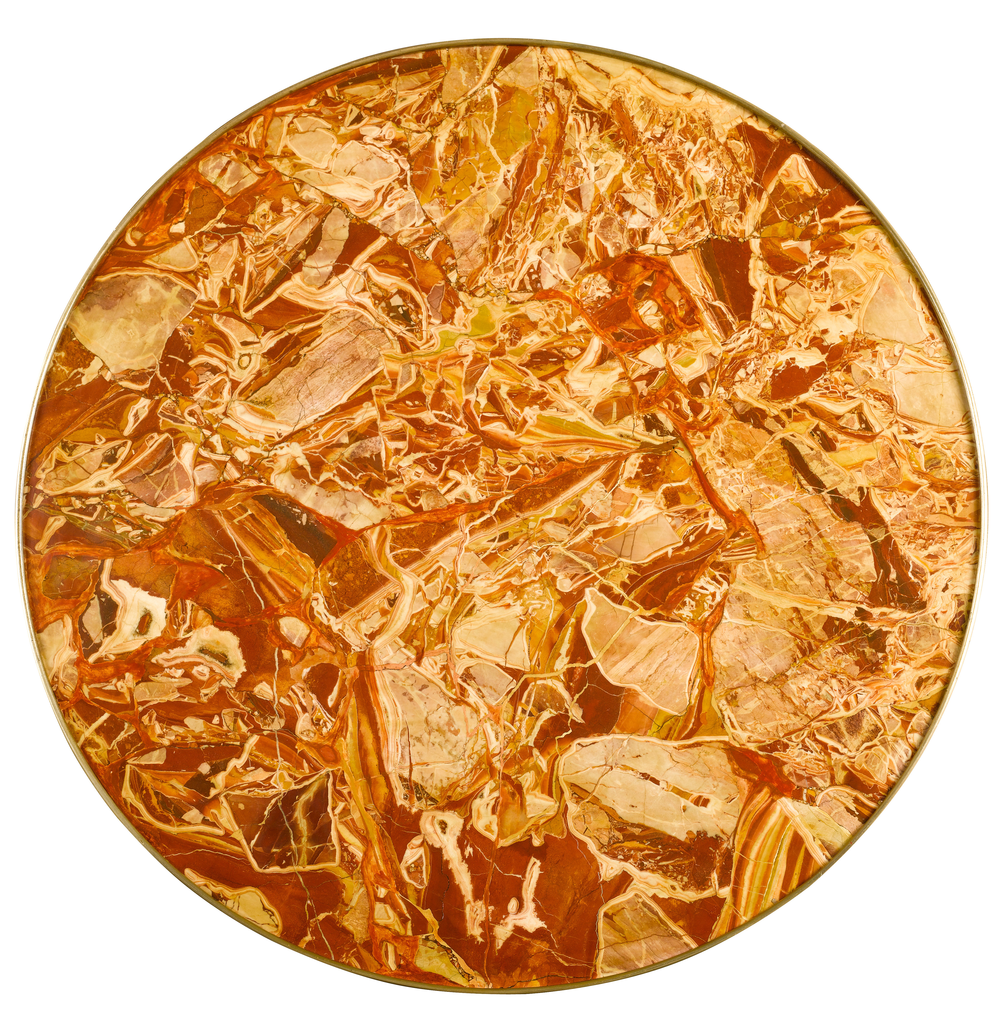 Auf höchstem Rang der Meisterschaft ist die kunsthandwerkliche Technik des Marmormosaiks, Diaspro di Sicilia, armiert auf Steinplatte. Die Besonderheit in der Ausführung der Marmorplatte und die hohe Qualität der Bronzen dieses wohlproportionierten Möbels sprechen für eine der führenden und innovativsten Werkstätten Italiens in dieser Zeit.