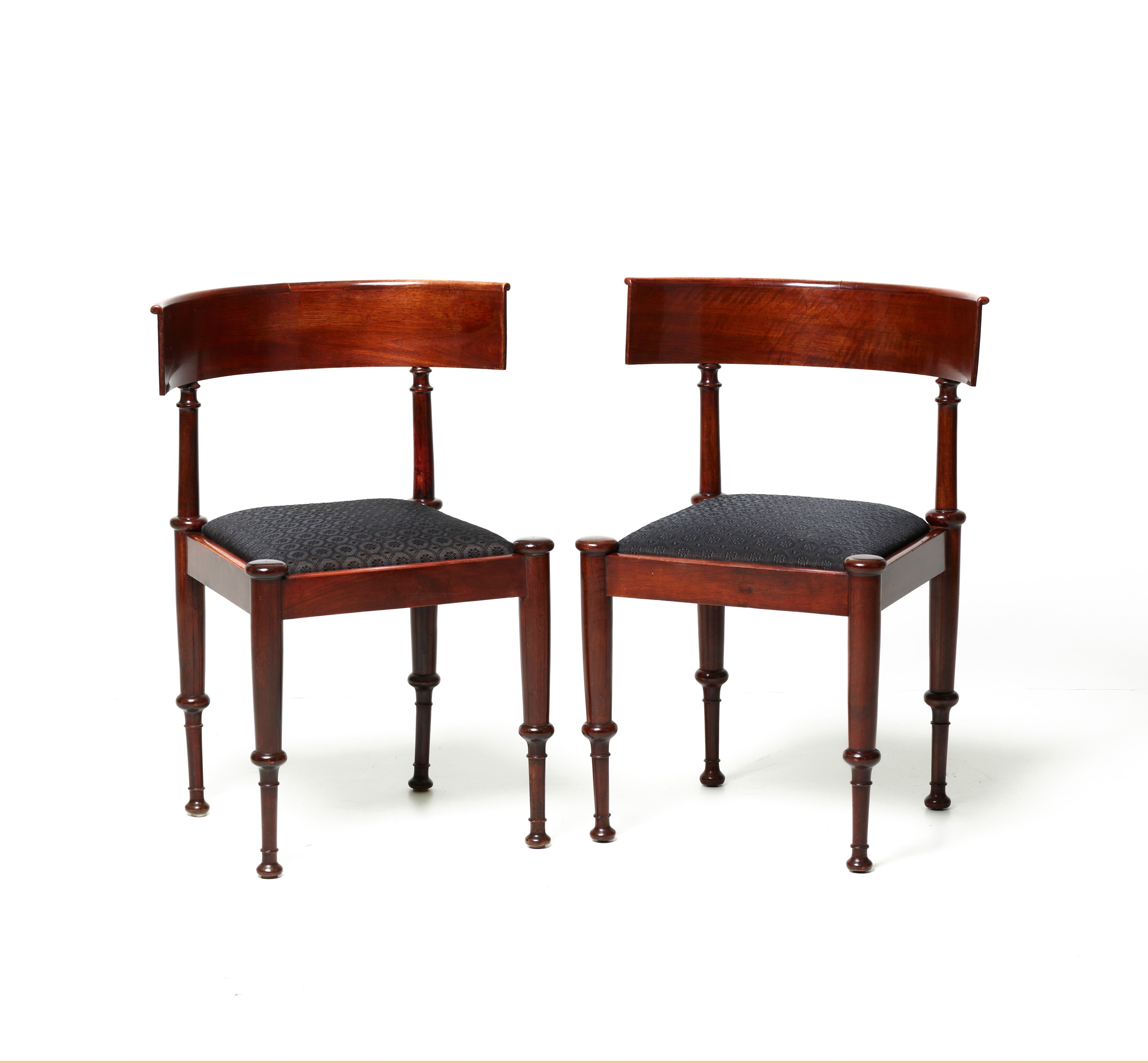Die Möbel In Constantin Hansens eigenem Apartment in Amalievej in Kopenhagen waren überwiegend nach seinen Entwürfen gefertigt. Darunter zählten auch die hier vorgestellten Stühle, von denen es nur ganz wenige Ausführungen gibt. „Die Wände im Wohnzimmer der Familie waren in einem warmen Pompejanischen Rot gehalten, aber das meiste davon war natürlich mit Gemälden bedeckt. Tisch und Stühle waren schlicht und würdevoll im Stil, aber natürlich nicht so bequem oder mit Plüsch bezogen, wie man es heutzutage verlangt“ schrieb Constantin Hansens Tochter Elise[1]. Insgesamt konnte die Forschung bis heute elf verschiedene Möbelentwürfe Hansen zuordnen. Es ist jedoch leider nicht bekannt, welcher Tischler die Entwürfe von Hansen umsetzte.