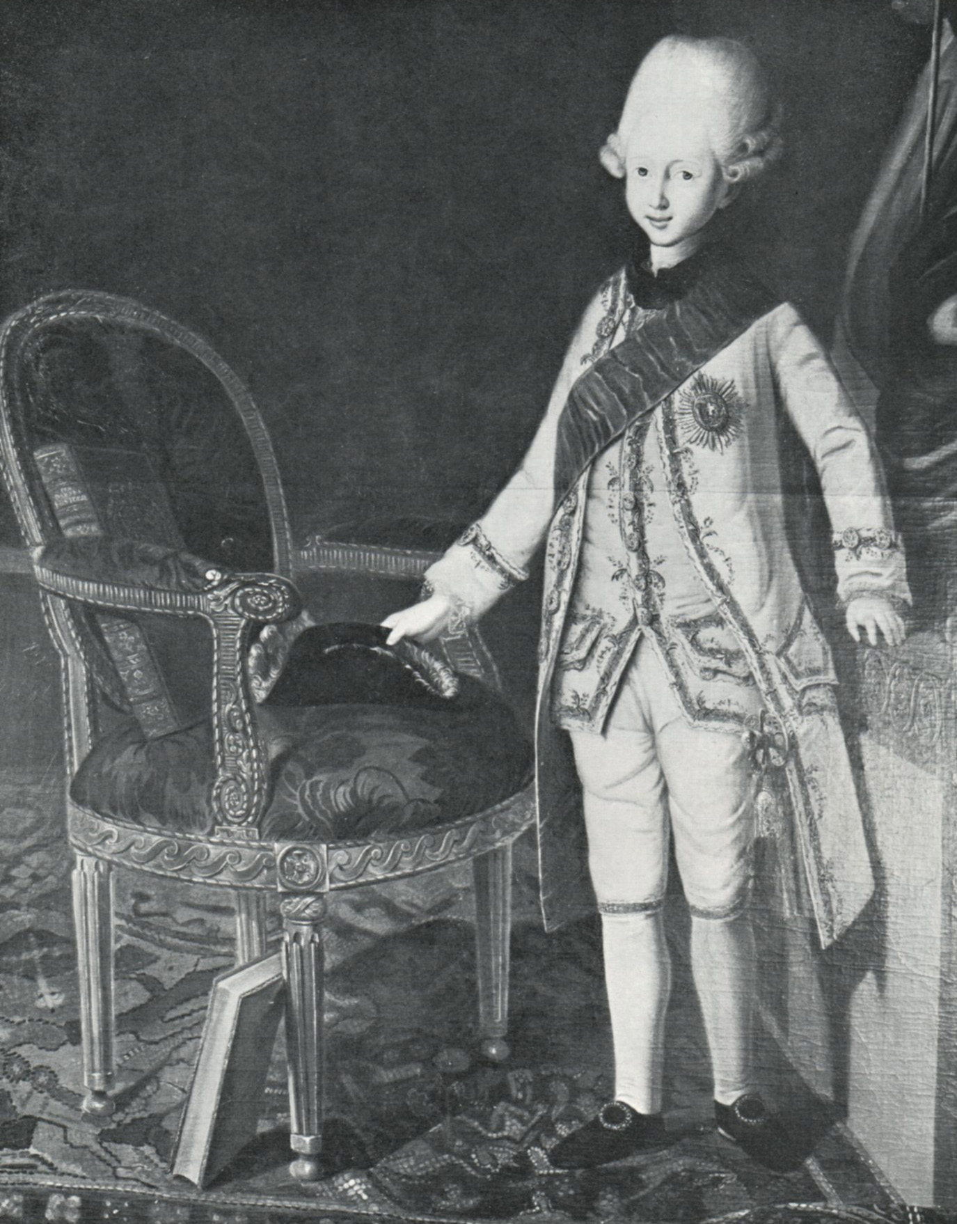 Das abgebildete Gemälde von 1774 zeigt den Dänischen Kronprinzen Frederik VI. neben einem Vergleichsstück dieses königlichen Armlehnsessels.