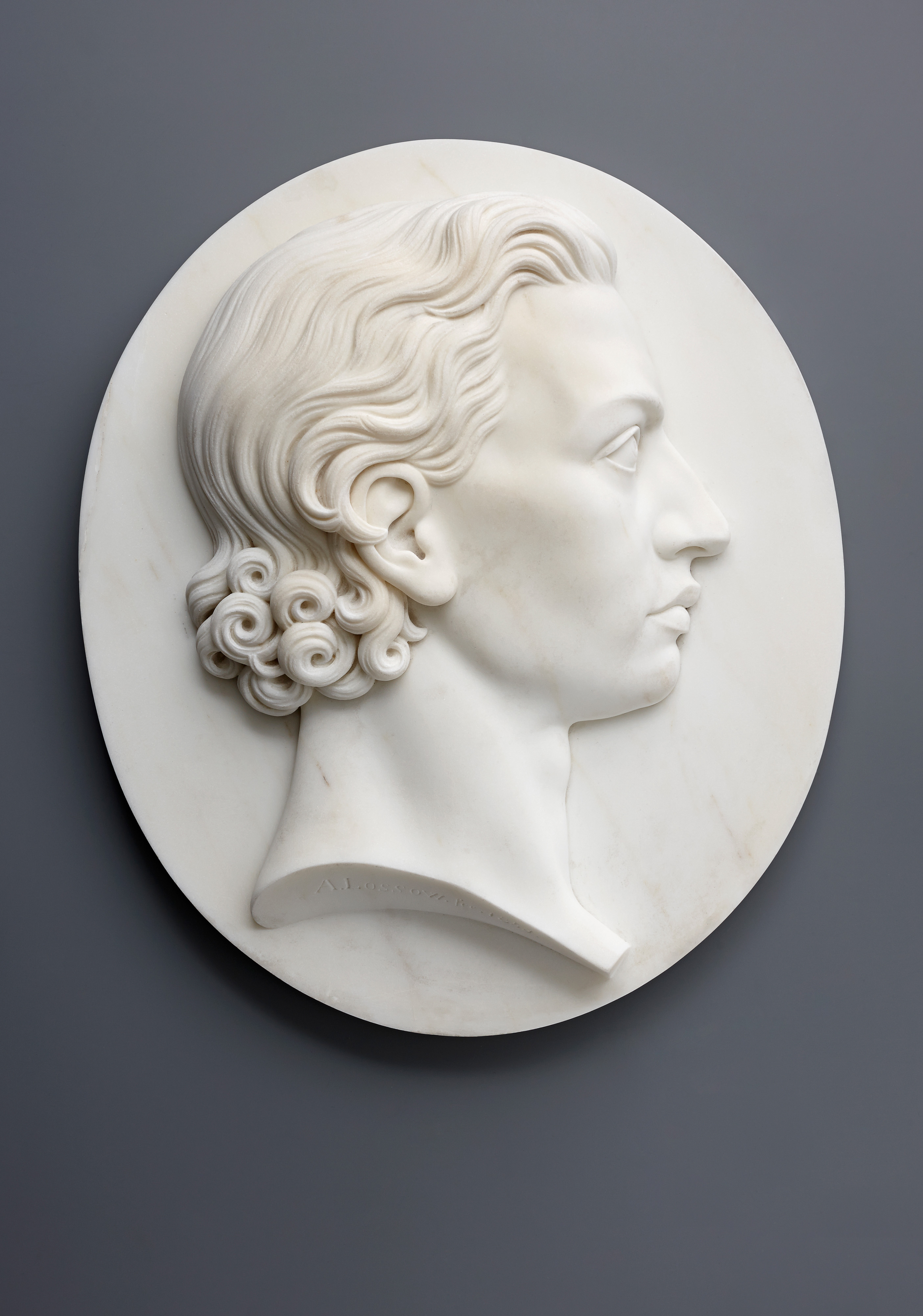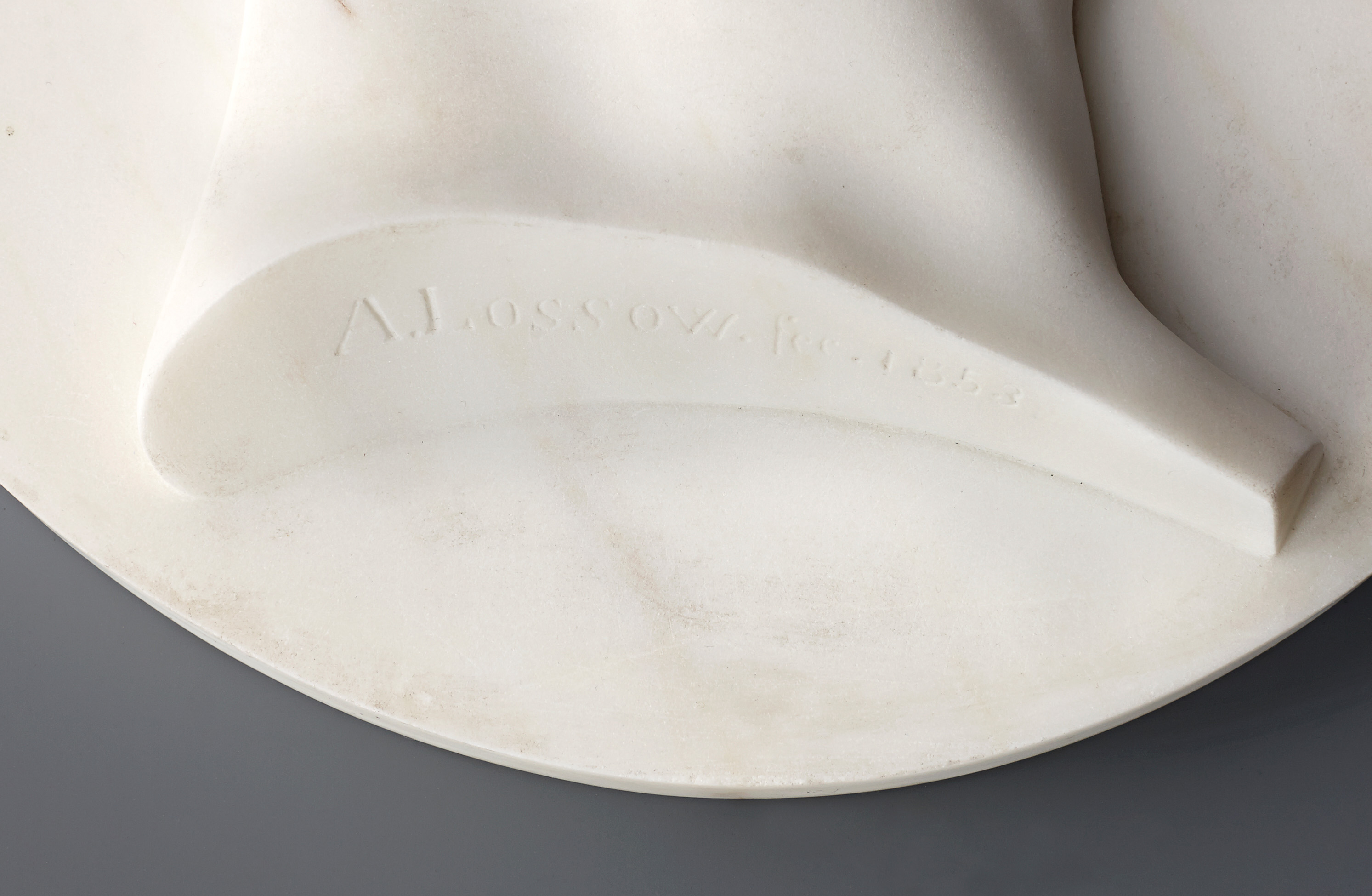 Idealisiertes Bildnis des Dichters im Profil nach rechts gewandt. Auf der Unterseite des Halsausschnittes signiert und datiert: „A. LOSSOW. fec. 1853.