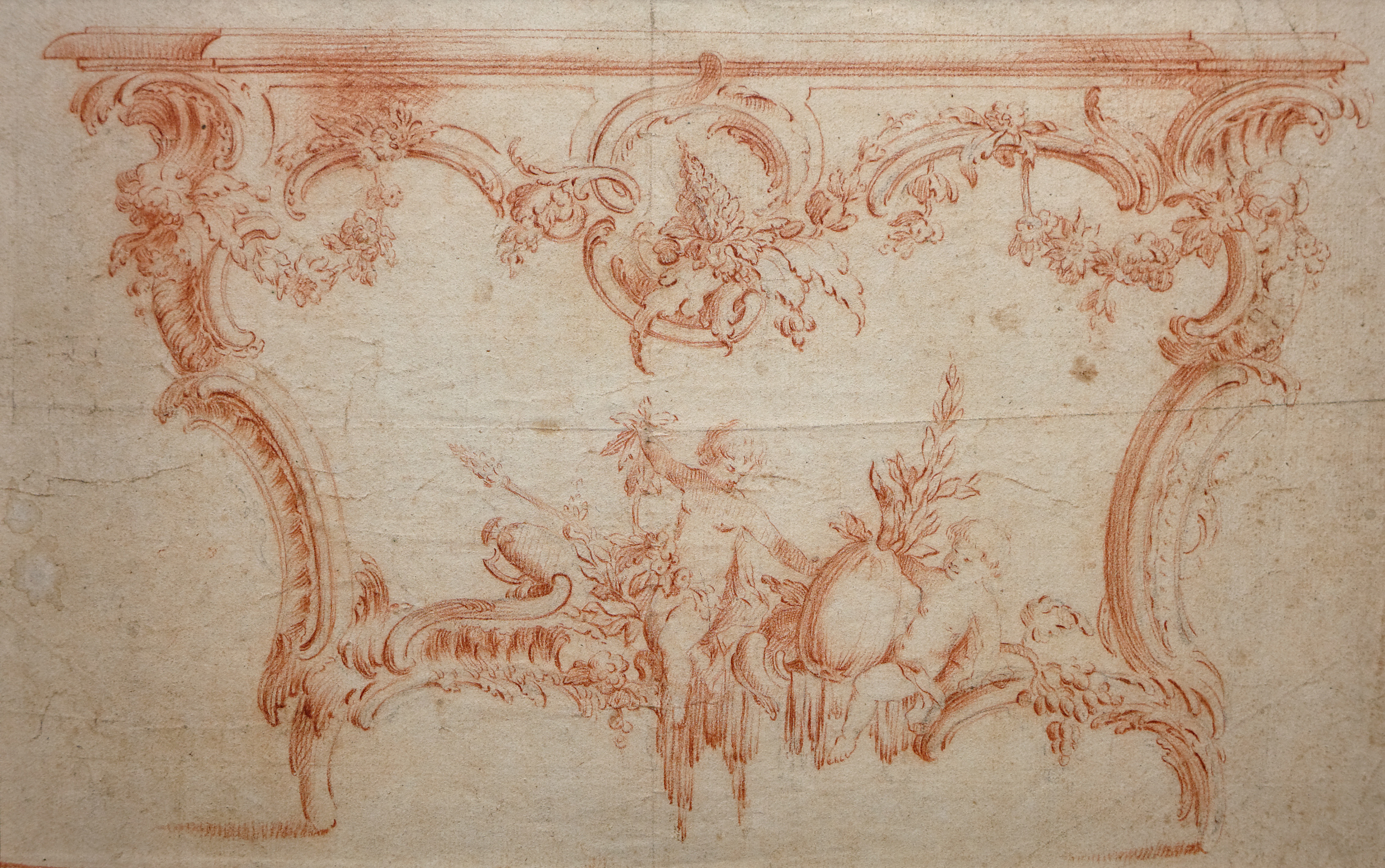 Dieser Konsoltisch-Entwurf wurde gestochen von Johann Wilhelm Meil, um 1753; Ein Exemplar befindet sich in der Staatlichen Kunstbibliothek, Berlin-Charlottenburg, abgebildet bei Kreisel, No. 733, siehe untenstehende Abbildung.