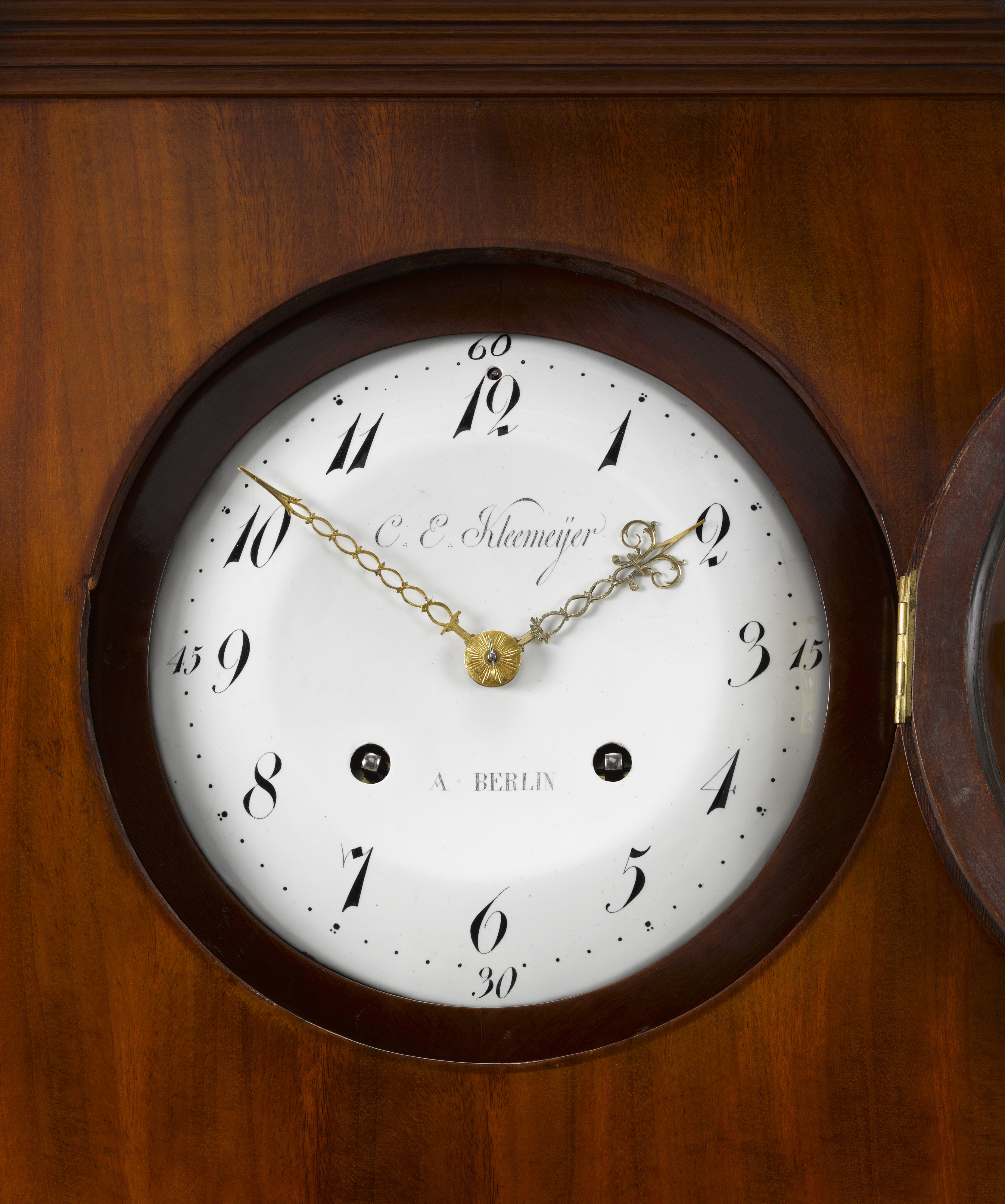 The court clockmaker Christian Ernst Kleemeyer (1766 – 1812) was together with Möllinger the most important Berlin maker of clocks and mechanical instruments, his dates of birth and death are not known, but it is proved by the archives, that he became old master in 1790; and from 1800 onwards he owned a workshop with twelve employees and in 1812 he supplied several clocks to Sansscouci Palace in Potsdam.