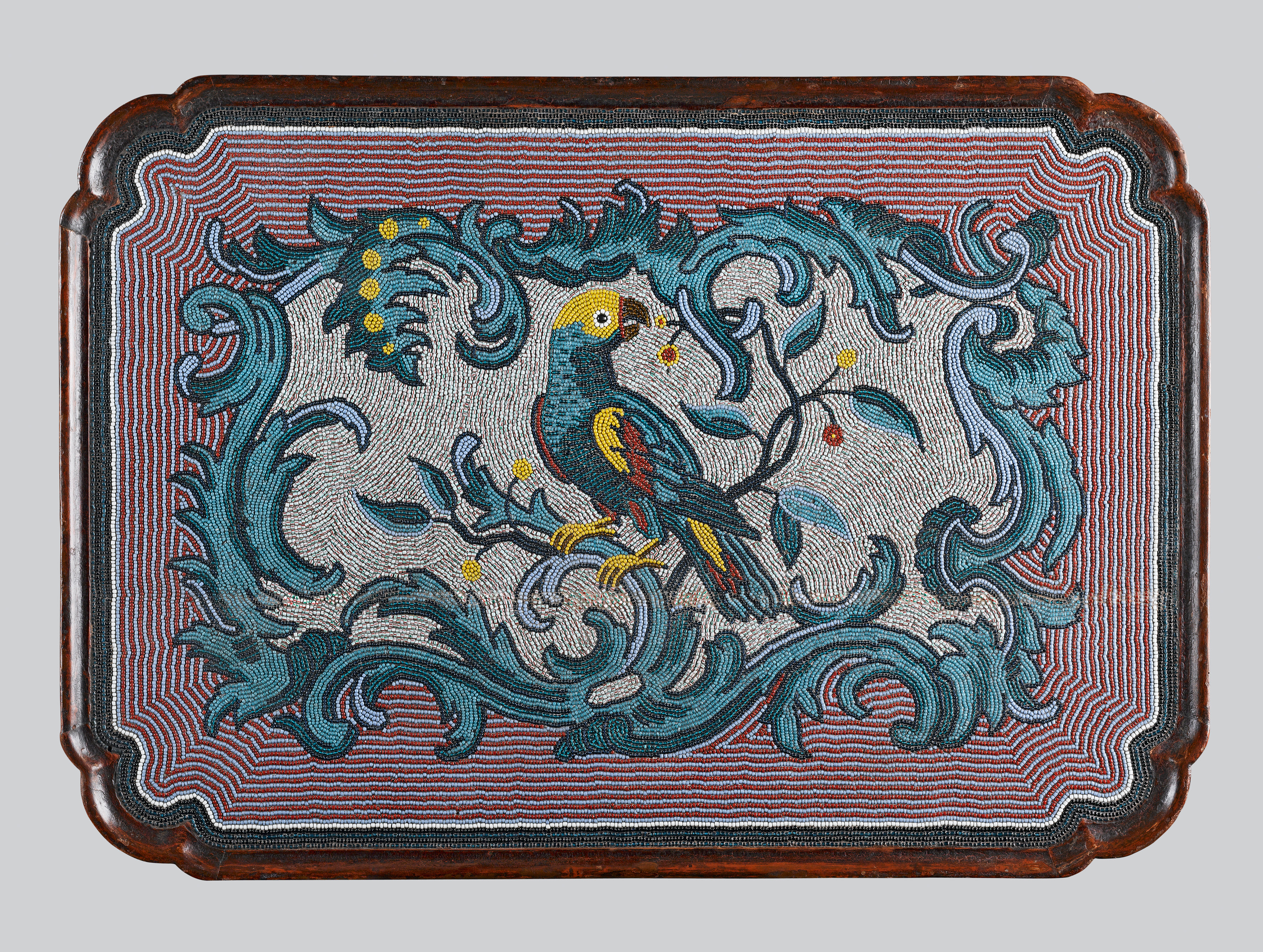 Painted wood, glass beadwork decoration