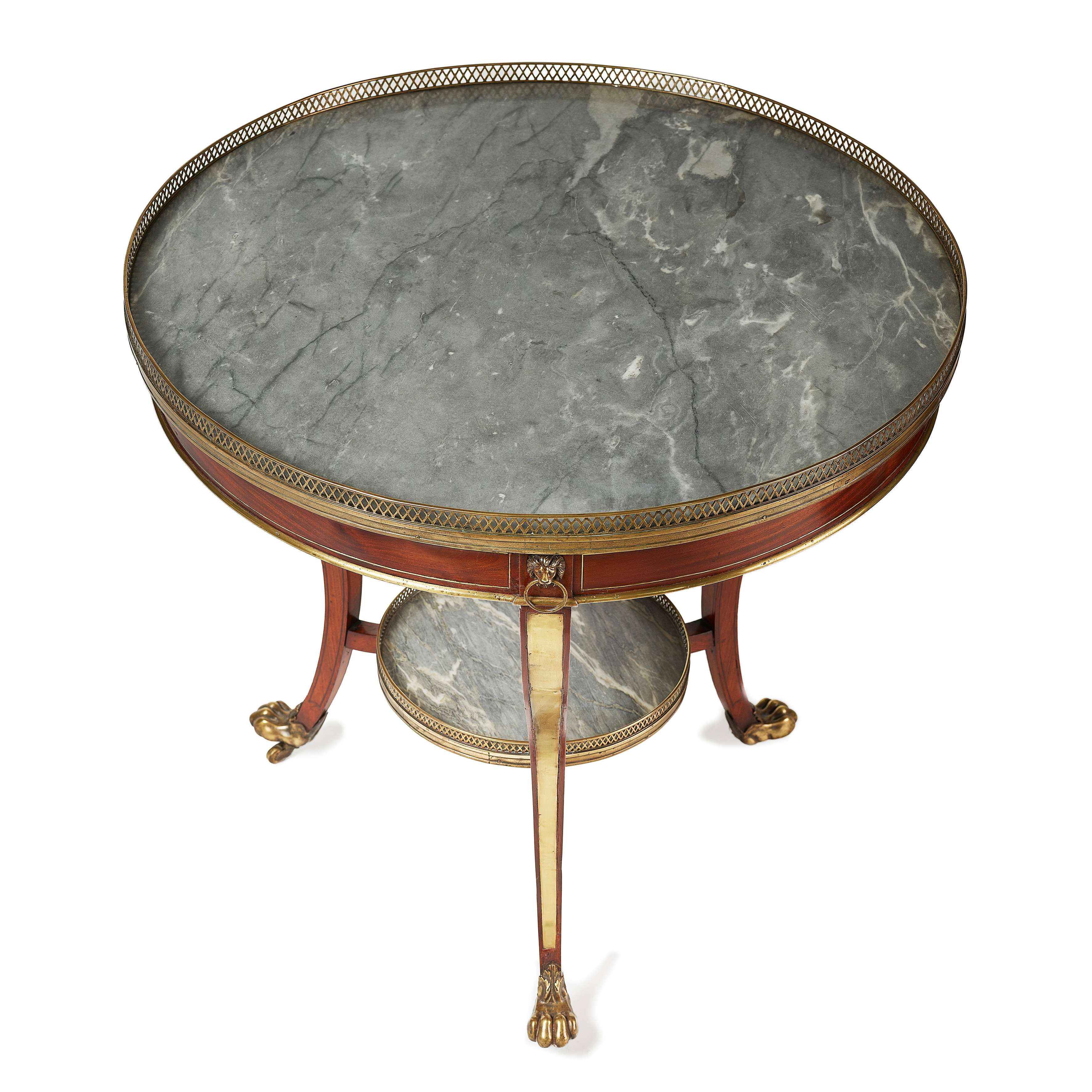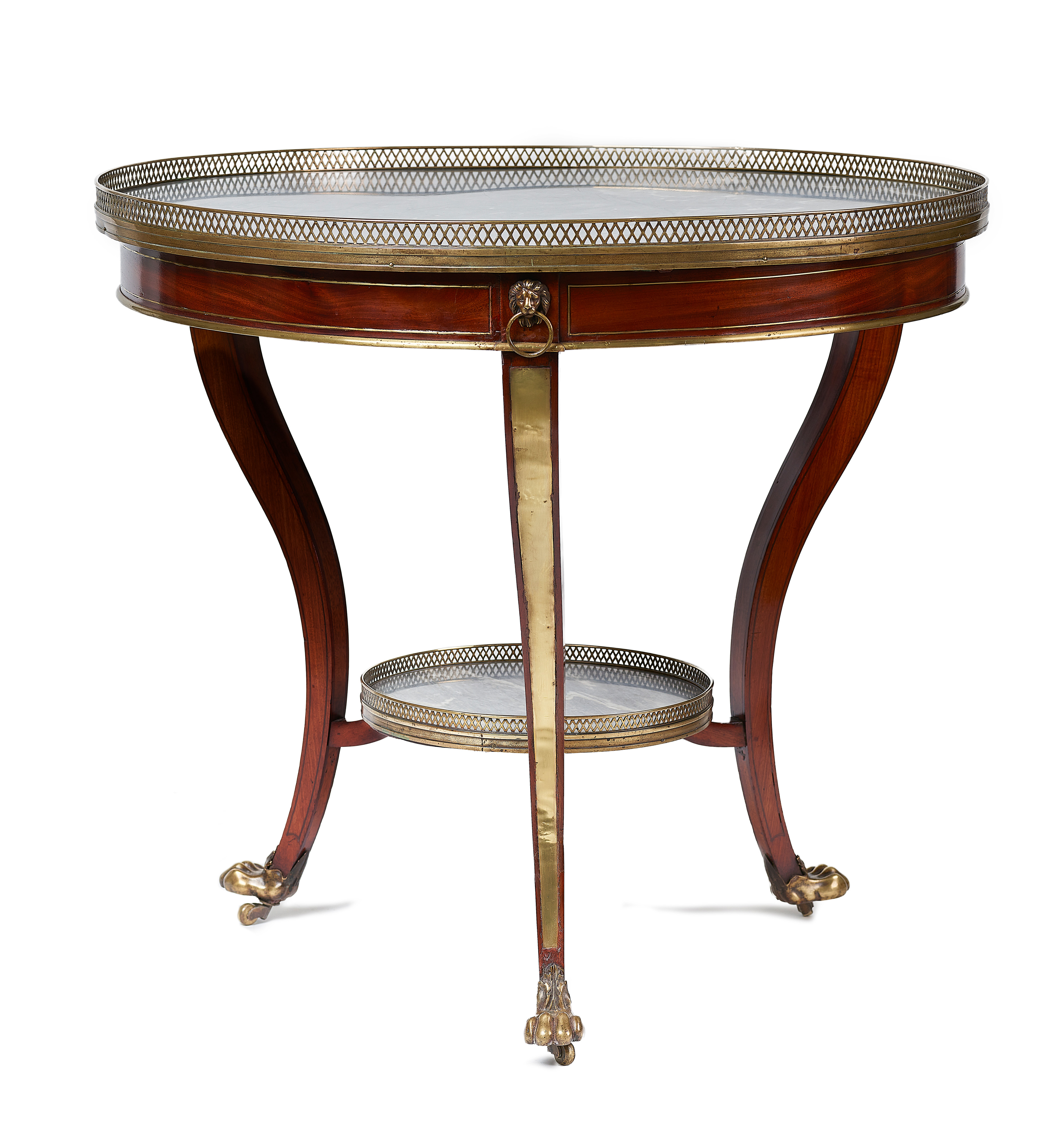 Guéridons of such simple yet elegant design were popular in the 1790s and derived from earlier, more elaborately decorated versions. Molitor’s use of galleries and an undertier, which either rested on or was connected to the legs with short stretchers, was much imitated by his contemporaries who recognized the beauty in the simplicity of his designs. A drawing by an anonymous ebéniste of a piece almost identical to the table offered here, is illustrated in the major biography on this very interesting cabinet-maker ”Molitor, Ebéniste from the Ancien Régime to the Bourbon Restoration” by Ulrich Leben and exhibits Molitor’s strong artistic influence. As the Empire style became more elaborate and lavish during the first few years of the 1800s, such restrained pieces vanished from the repertory of Molitor and other furniture makers of the time. Subtle and simple works such as this guéridon remain as products of an era when simplicity was the virtue of the craftsman.
